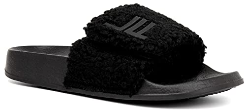 32. London Fog Womens Scarlett Sherpa Spa Slide Sandals Open Toe House Indoor Outdoor Shoes Sandals black 9